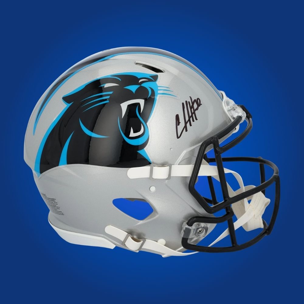 The Chuba Hubbard Signed Carolina Panthers Silver SpeedAuthentic Helmet combines alternative styling with Chuba Hubbard’s autograph, offering a unique collectible for Panthers supporters.