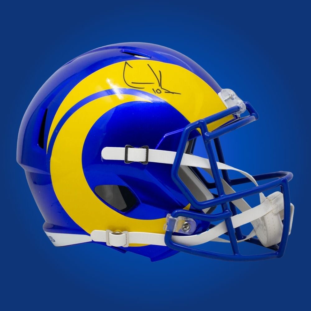 Cooper Kupp Signed Los Angeles Rams Blue Speed Helmet. Certified authentic, a must-have piece for those who admire Super Bowl MVPs and Rams receiving legends.
