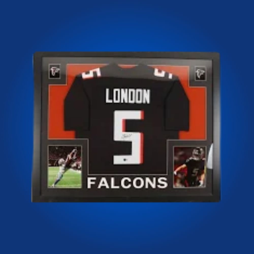 Autographed Atlanta Falcons full framed jersey by Drake London. Certified authentic, a top piece for Falcons memorabilia. All items come with a Certificate of Authenticity. Please note: Some team logos may not be included on full framed matted items. Action images may also differ on some listings for catalog consistency.