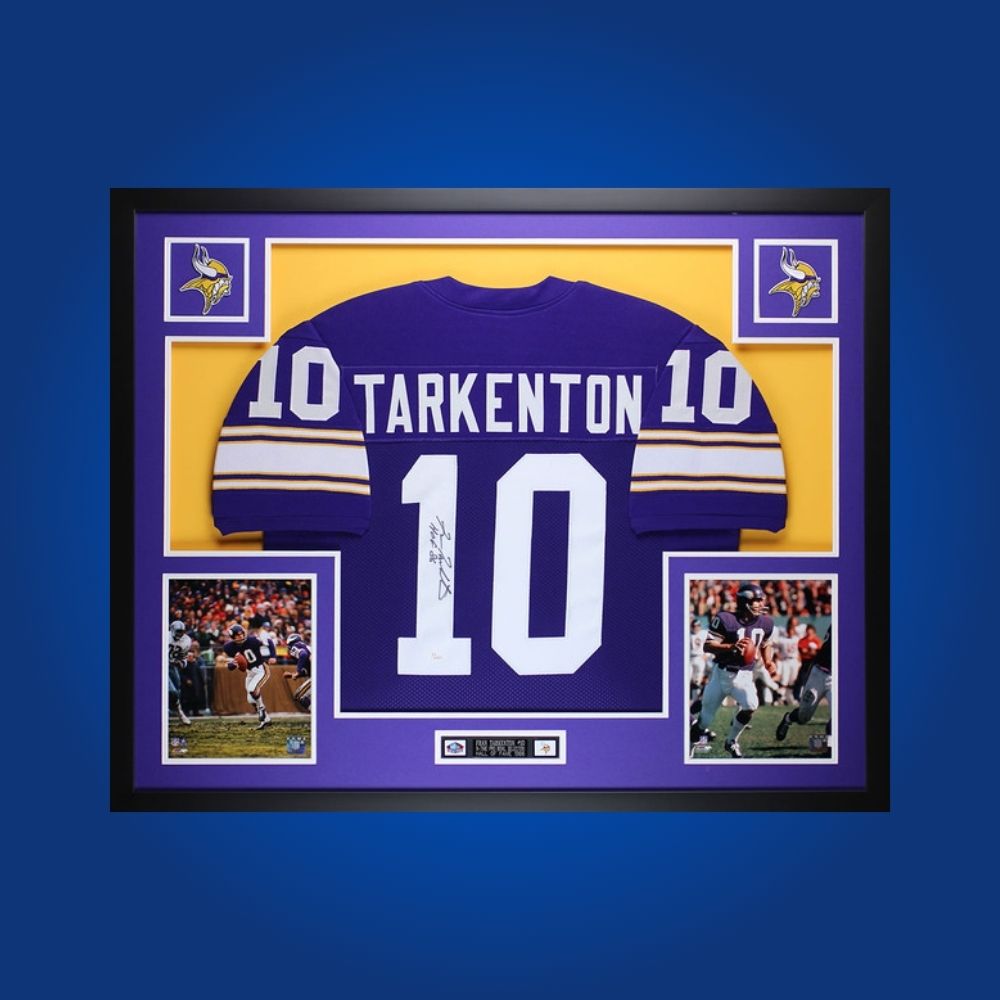 Signed Minnesota Vikings jersey by legendary quarterback Fran Tarkenton. Custom framed and authenticated for true Vikings collectors.