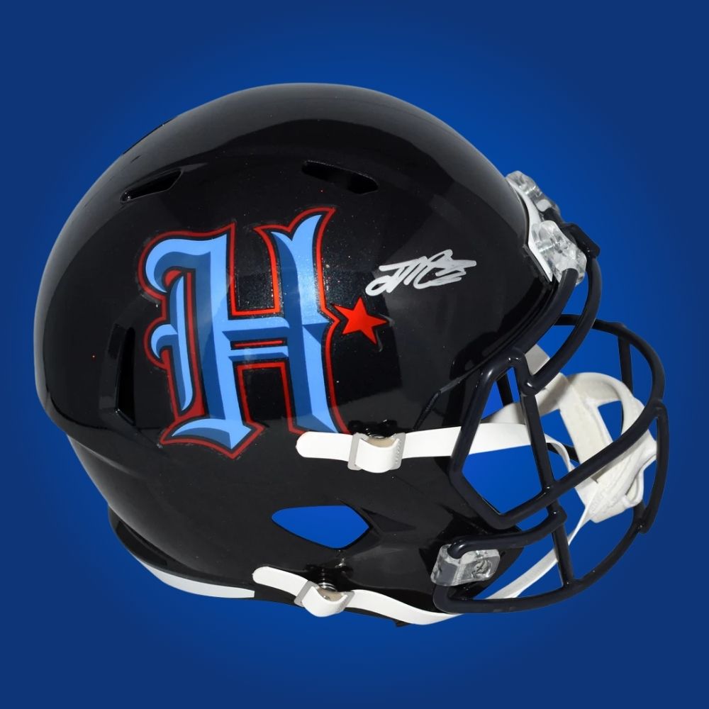 Joe Mixon Signed Houston Texans H Town Black Speed Replica Helmet. Certified authentic, a unique collectible for fans of running backs and Texans memorabilia.