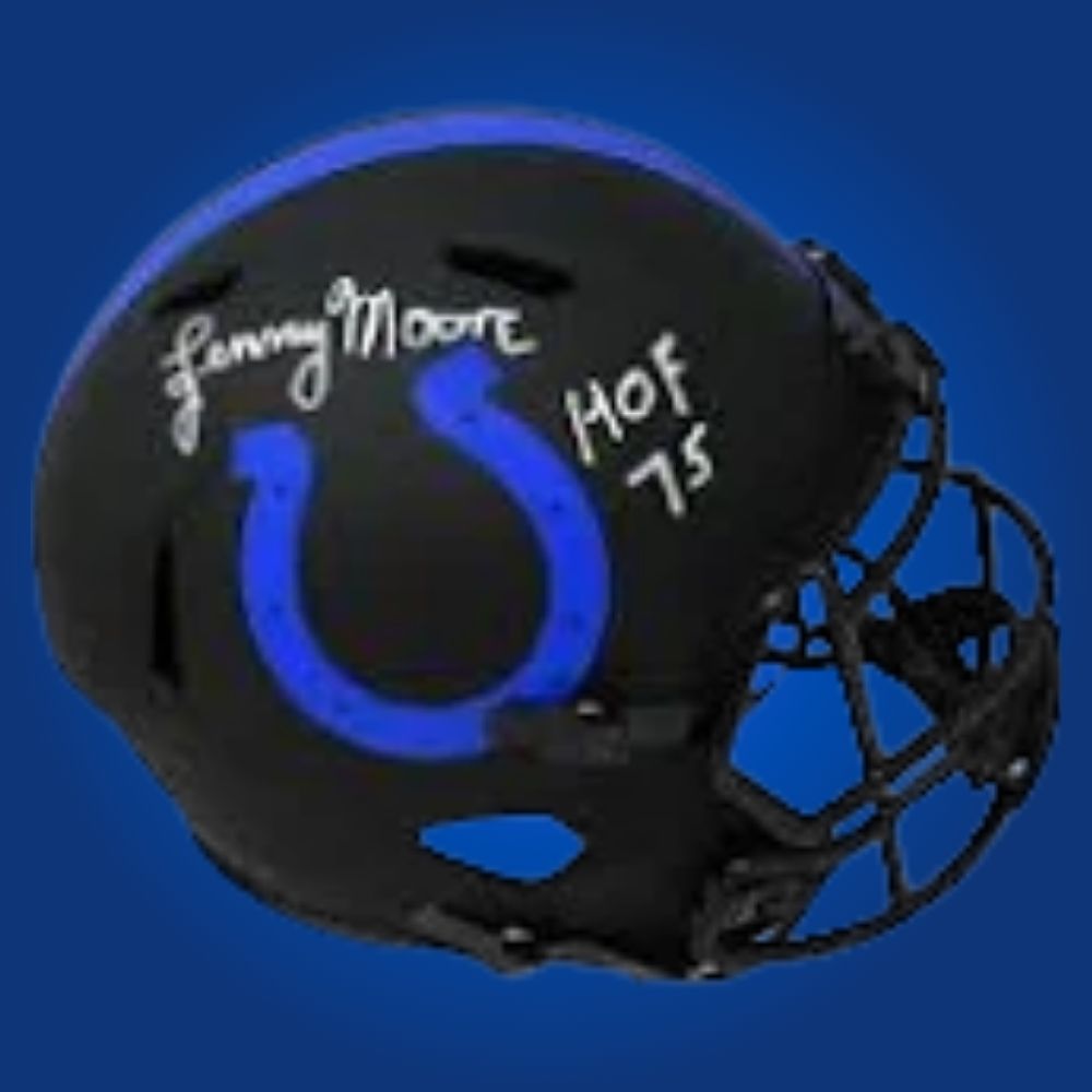 Lenny Moore Signed Indianapolis Colts 1975 HOF Eclipse Speed Replica Helmet. Includes Certificate of Authenticity, a must-have for fans of Hall of Fame legends.