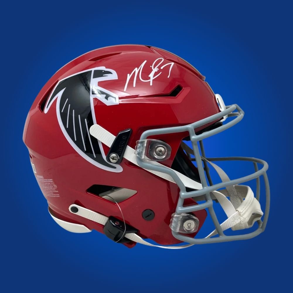 The Michael Vick Signed Atlanta Falcons Lunar Speed Authentic Helmet boasts the Falcons’ iconic look in a lunar-inspired finish, personally signed by Michael Vick—a must-have for Atlanta fans and collectors of quarterback memorabilia.