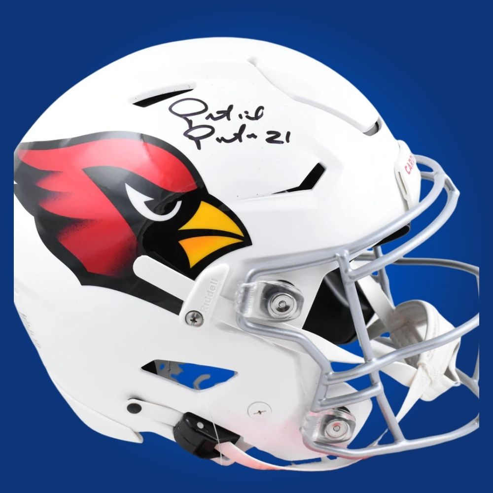 Arizona Cardinals White Speed Replica Helmet signed by Patrick Peterson. Certified authentic and perfect as a gift or for display among Cardinals collectibles.