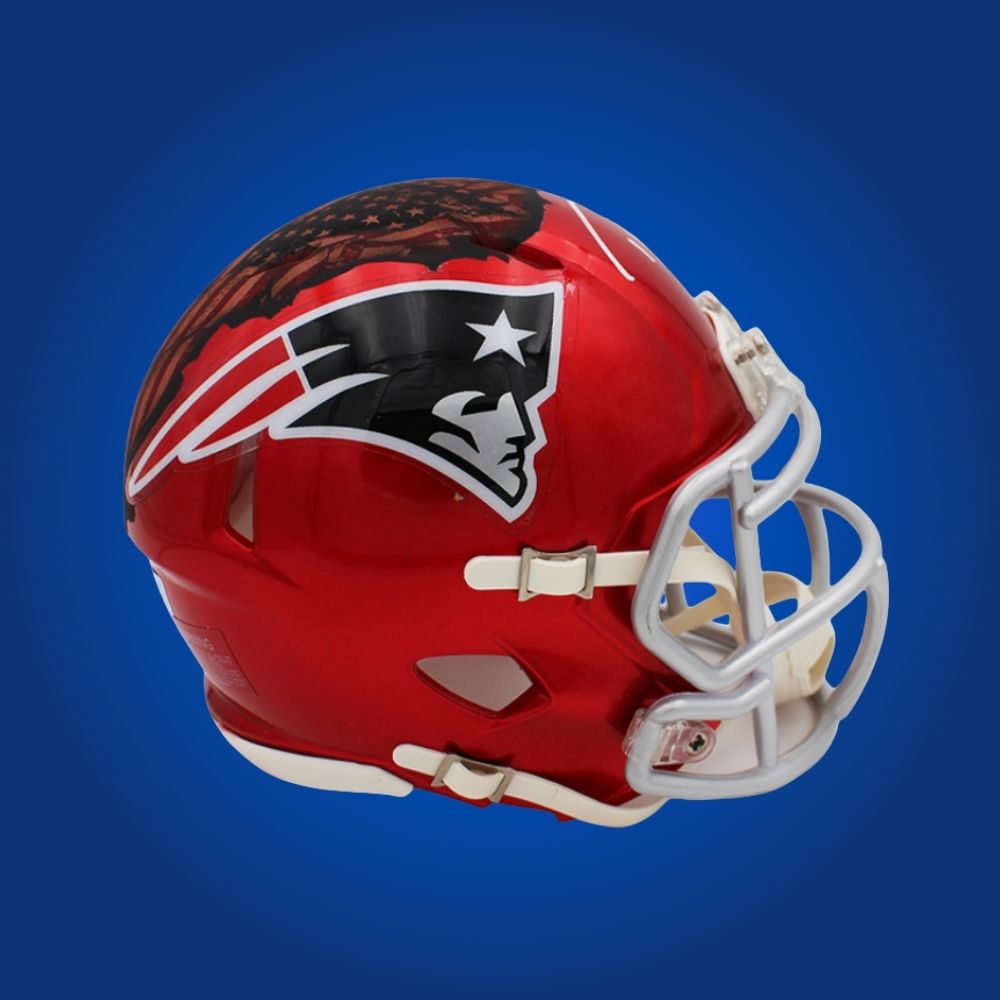 Autographed New England Patriots mini helmet by Tom Brady. This red Speed Flash mini helmet showcases his signature, making it a prime collectible for Patriots fans. Certified authentic. All items include a Certificate of Authenticity.